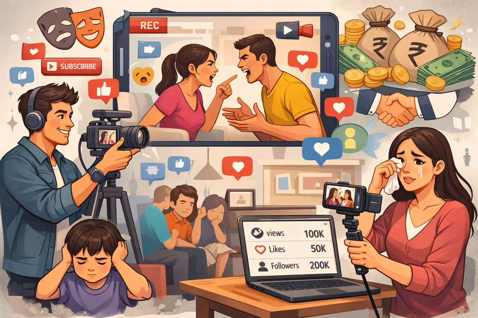 बीते कुछ वर्षों में एक नया ट्रेंड तेजी से उभरा है—पारिवारिक झगड़ों और निजी विवादों को कैमरे के सामने लाकर सोशल मीडिया पर साझा करना। पति-पत्नी के विवाद, भाई-बहन के मतभेद, सास-बहू की तकरार या परिवार के अंदर की छोटी-छोटी बहसें—जो पहले घर की चारदीवारी में सुलझा ली जाती थीं—अब वीडियो और पोस्ट के रूप में लाखों दर्शकों के सामने परोसी जा रही हैं।